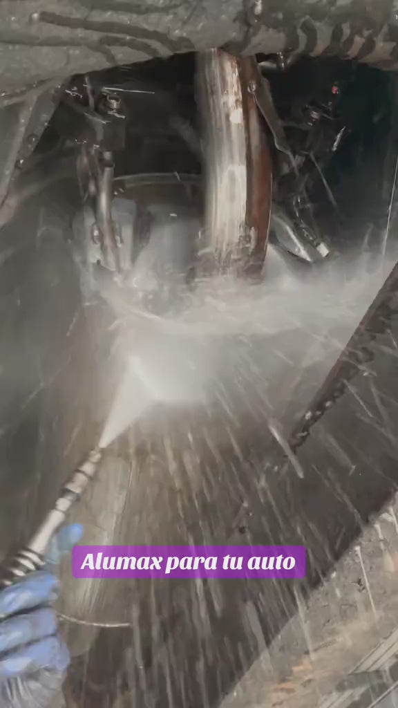 ALUMAX penetra profundamente en el óxido para aflojar y disolver la corrosión desde la primera aplicación. Solo debes aplicarlo, dejarlo actuar unos minutos y enjuagar: el metal recupera su brillo original sin esfuerzo. Funciona incluso en aluminio, fierro, acero y llantas.